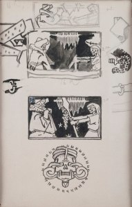 Koru-Kalevala, The Illustrated Kalevala sketches for Vainamoinen’s visit in Tuonela. 1923-1924.